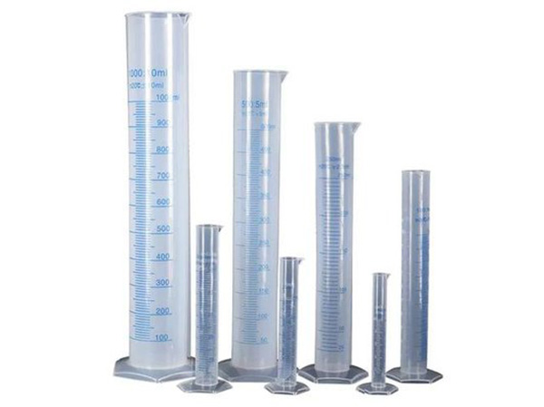 為豎長的圓筒形,上沿一側有嘴,便于傾倒。下部有寬腳以保持穩(wěn)定。圓筒壁上刻有容積量程,供使用者讀取體積。較大衡量容積從幾毫升到幾升。筒壁自下而上印有刻度。觀察讀數(shù)時,實驗人員要注意視線需要與液體的凹液面的低處(或凸液面的高處)相平。