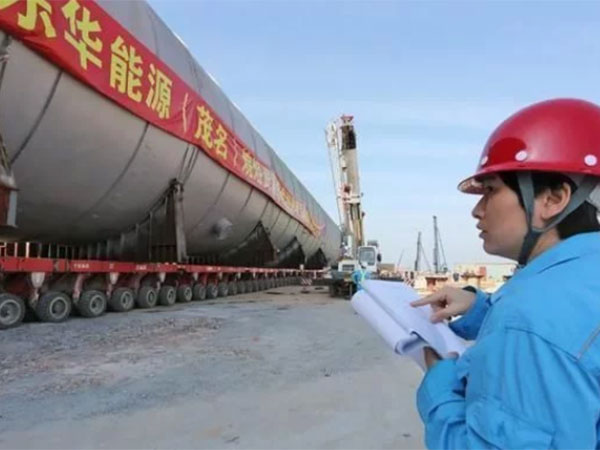 1#PDH裝置核心設(shè)備丙烷丙烯分離塔在該項目的重件碼頭完成滾卸作業(yè),至此丙烷丙烯分離塔、脫丙烷塔、脫乙烷汽提塔首批3臺塔器順利運輸至施工現(xiàn)場。